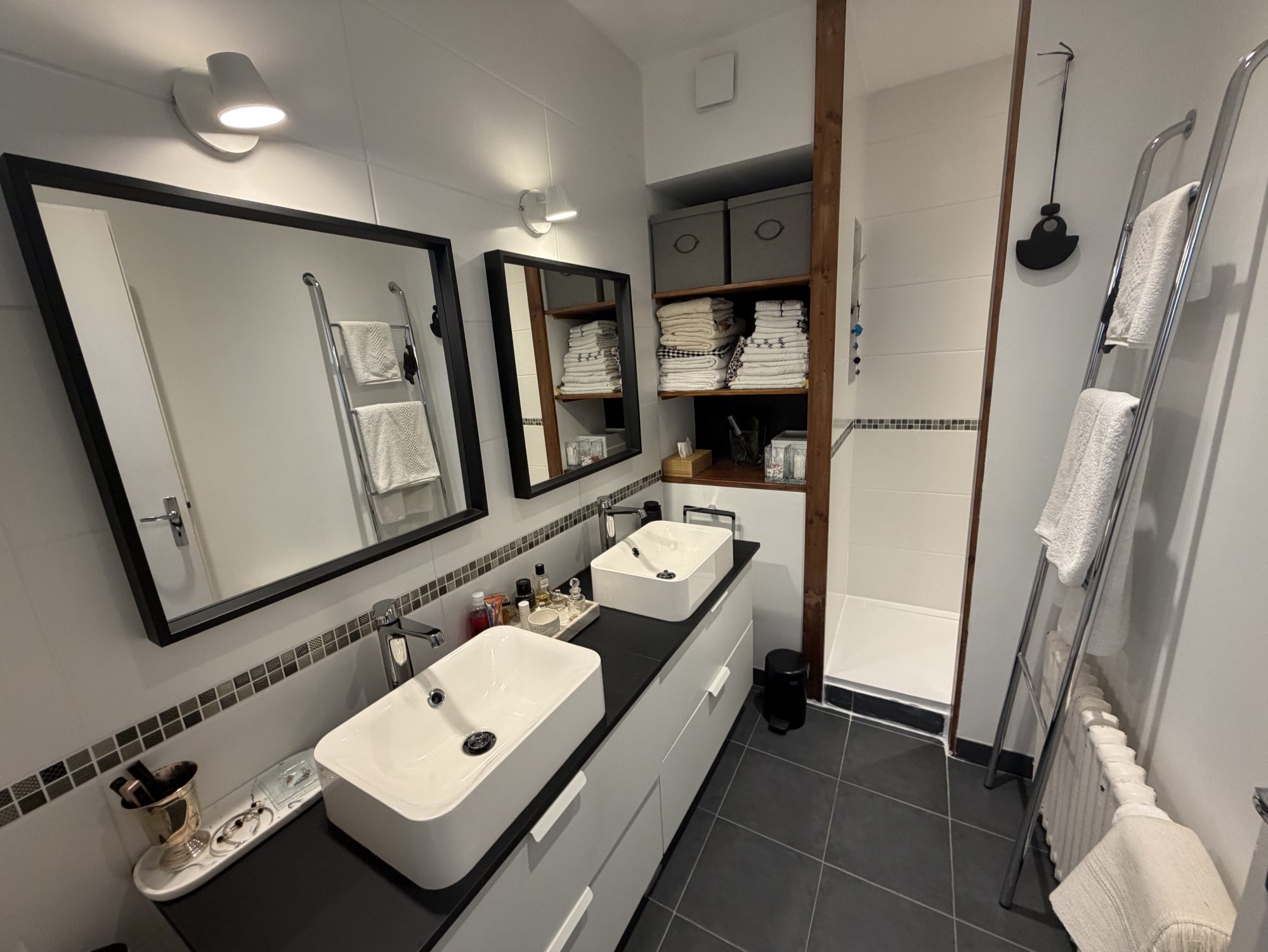 Au 2ᵉ étage sans ascenseur, il se compose d’une entrée, de deux chambres confortables, d’une cuisine séparée et d’un séjour lumineux, agrémenté d’un parquet d’origine qui lui confère une atmosphère chaleureuse et élégante.
